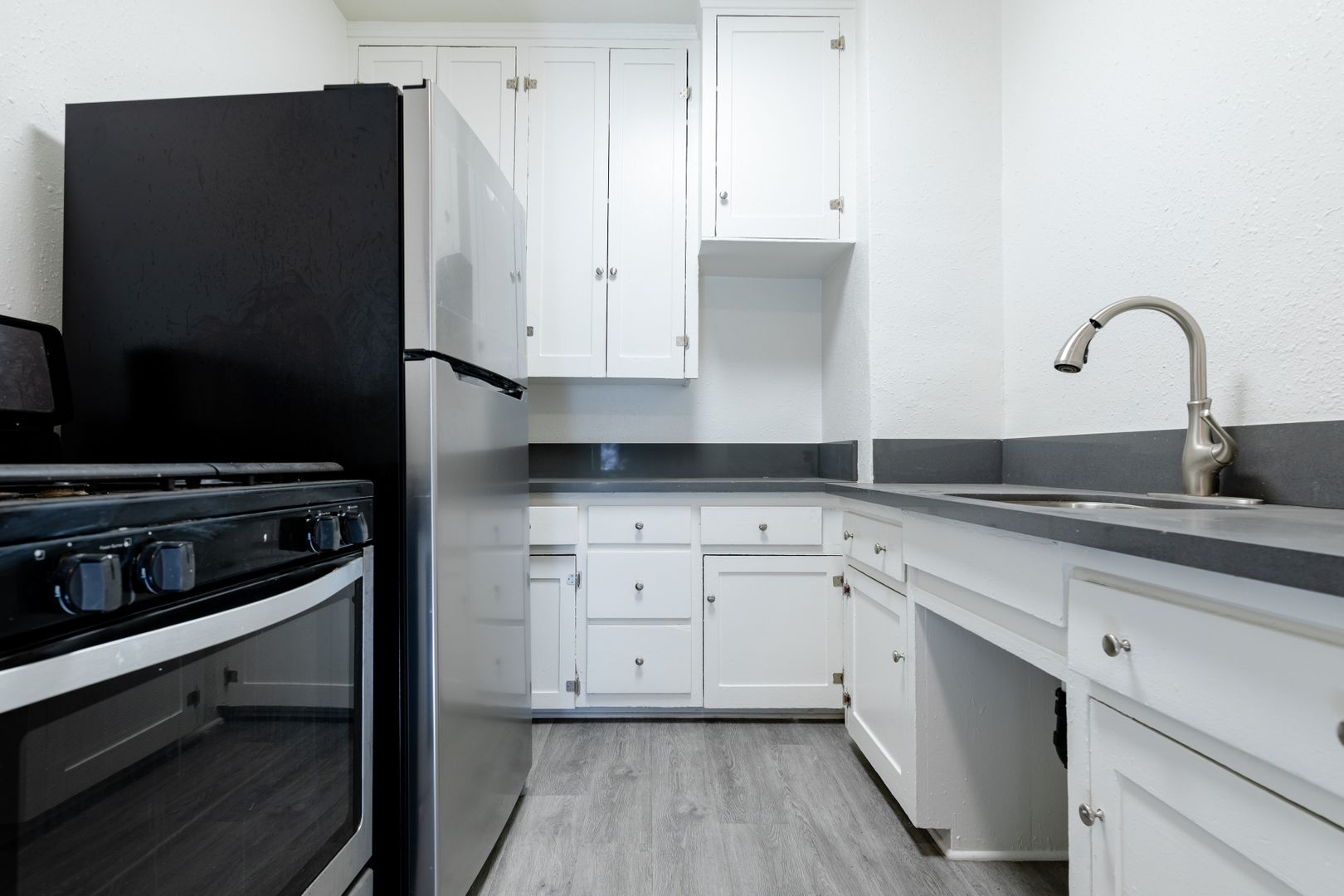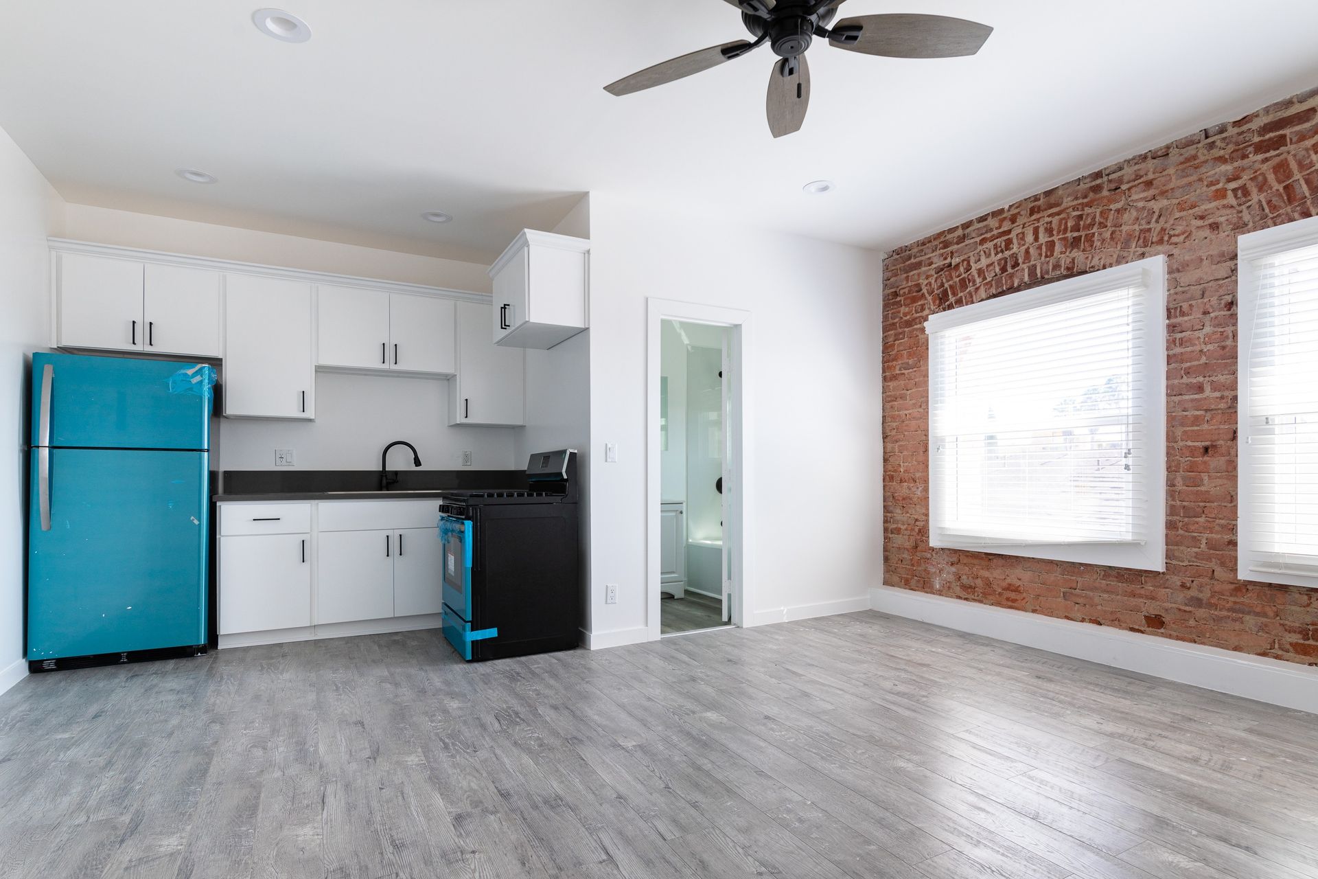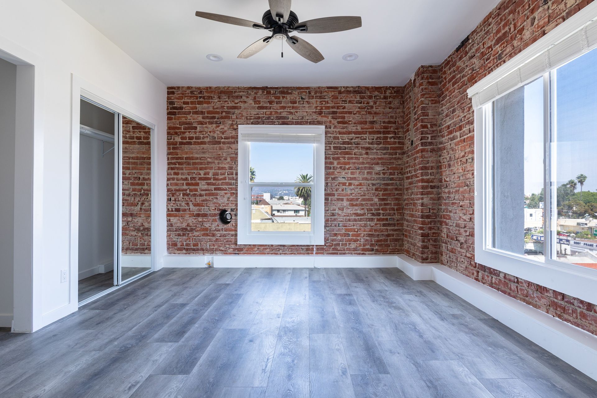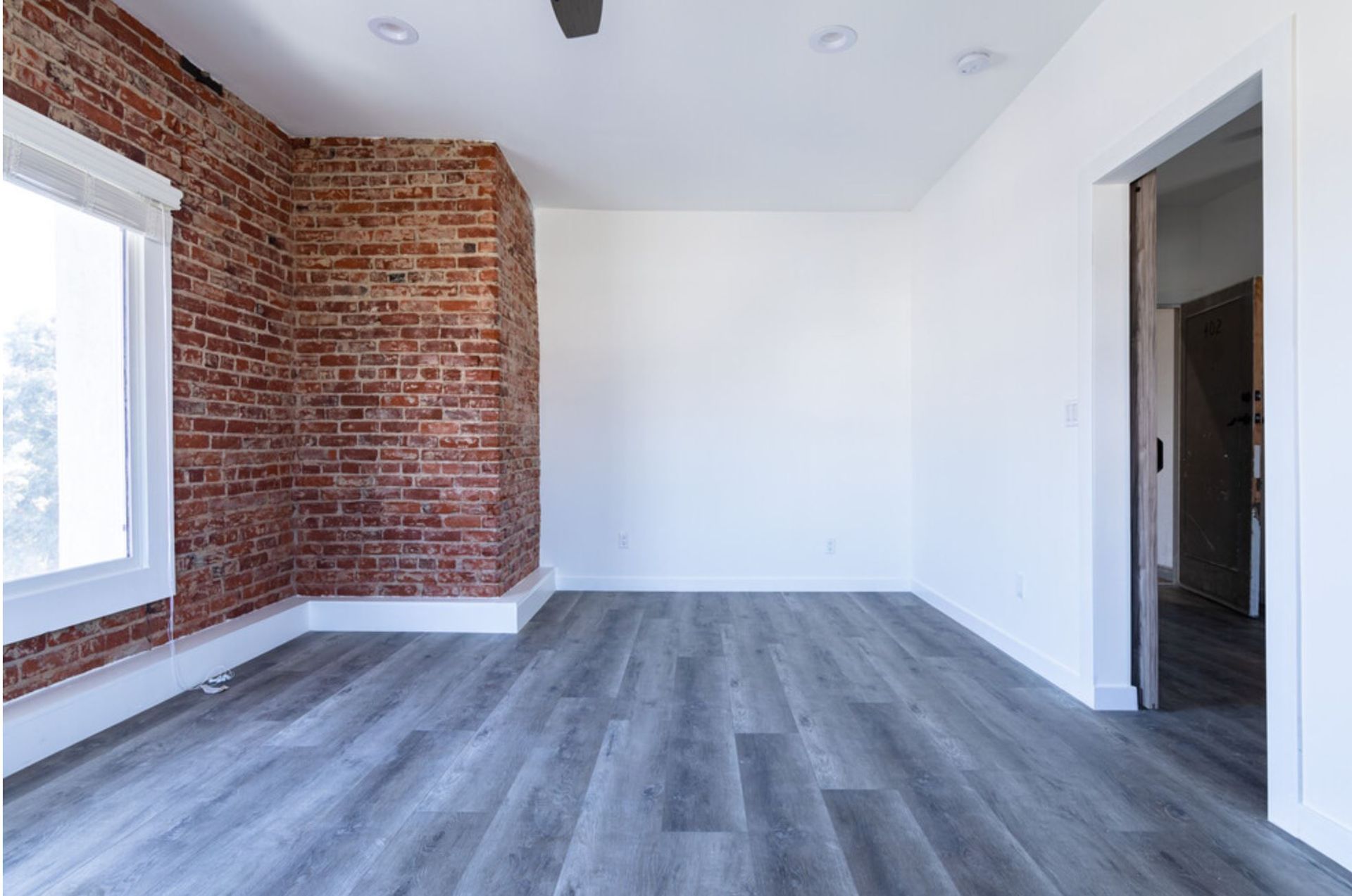 Spanish Style: Charming, exposed brick apartments with spacious floor plans, extensive closet space, stainless steel appliances, and hardwood flooring.