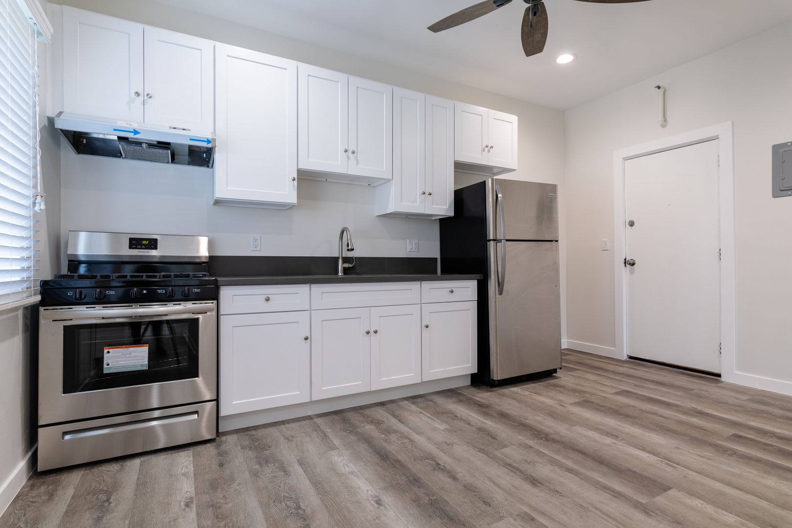 The units come with nice recessed lighting, and ceiling fans. Each unit has a large walk-in closet which come with great storage space. Enjoy the modern countertops, cabinets, stainless steel stove, fridge, and nice fixtures. The bathrooms are equipped with beautiful large white marble tile! Street parking only. Now offering Wi-Fi at $35/month (Take advanatage of this great offer compared to provider's full price).